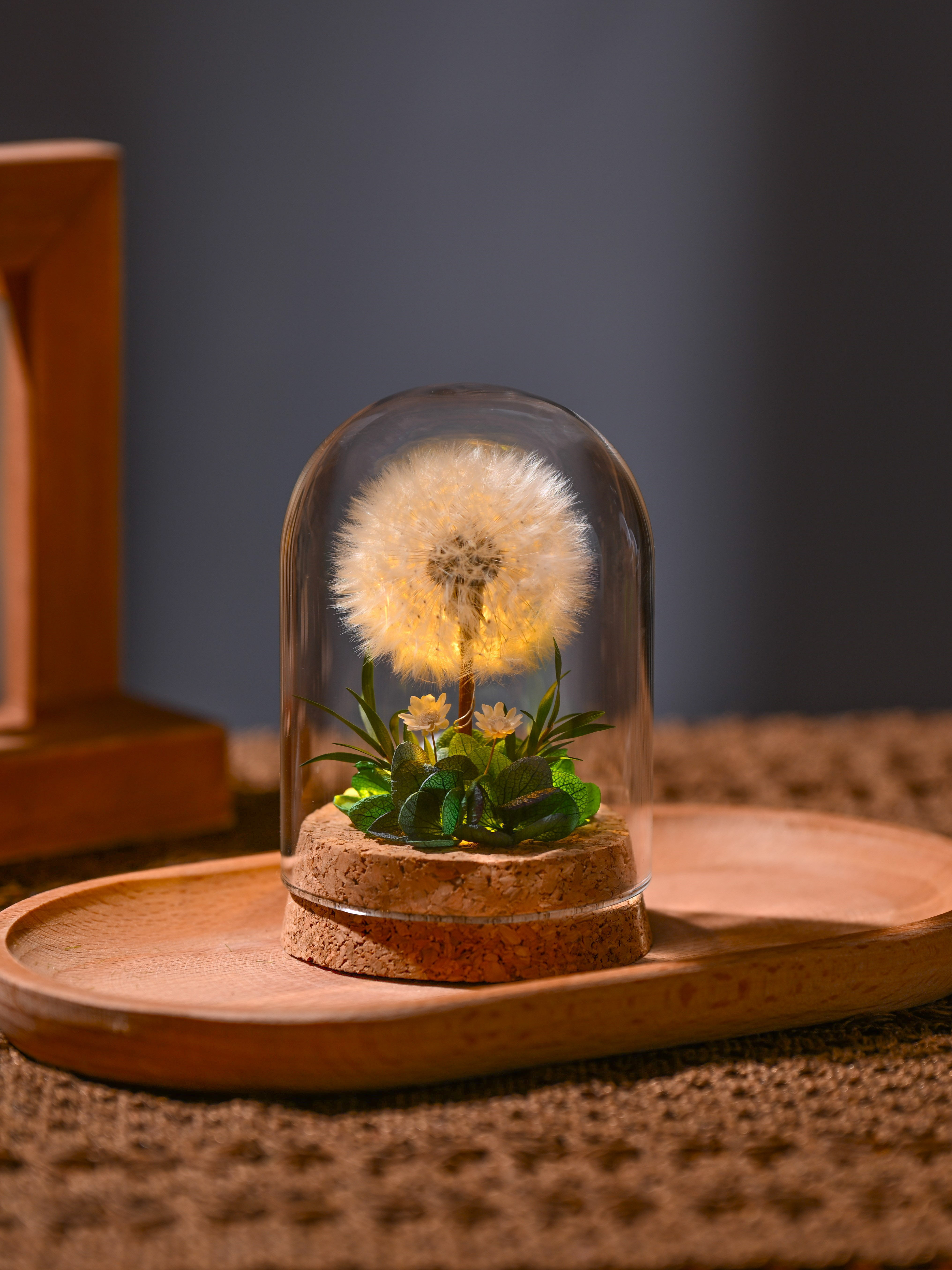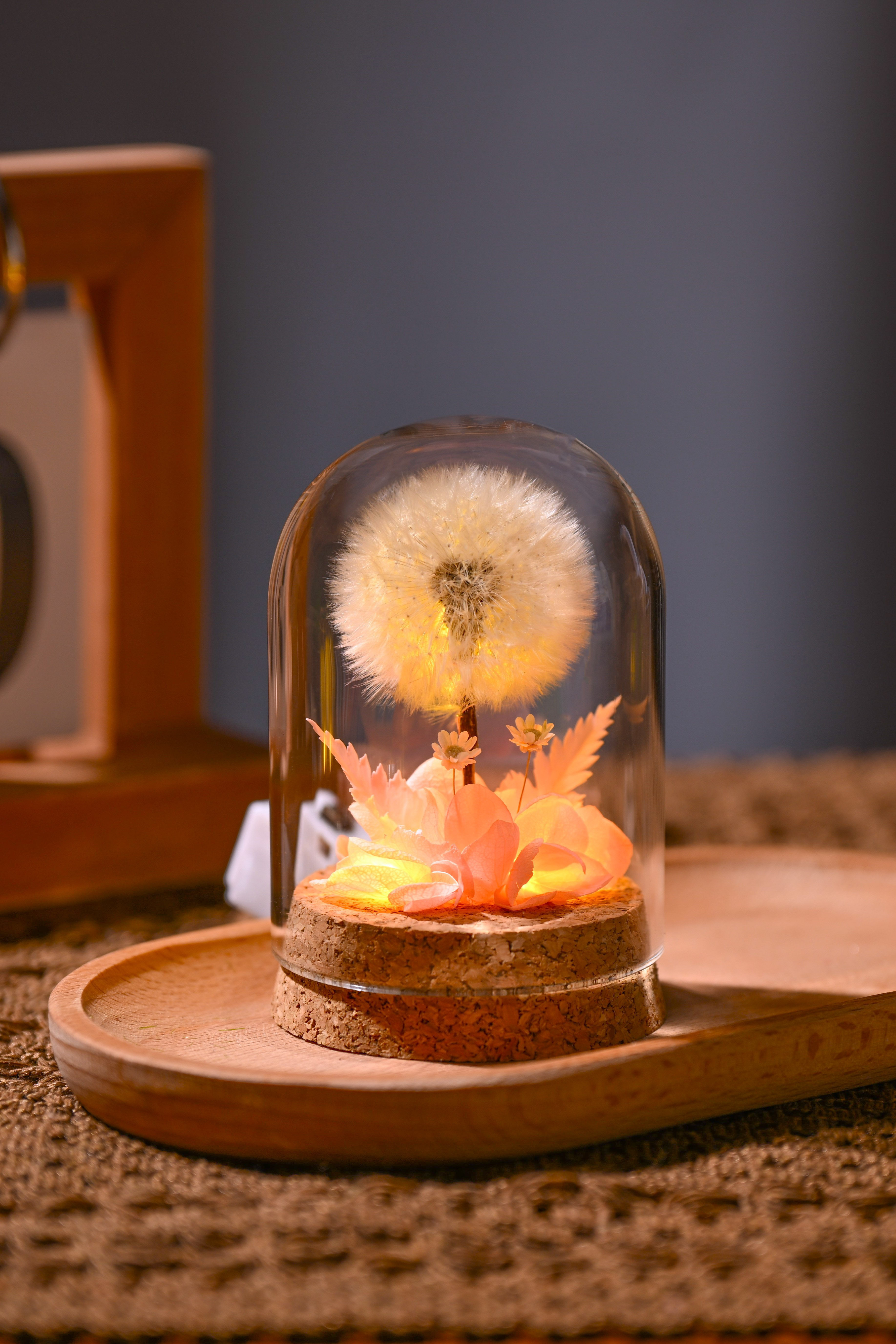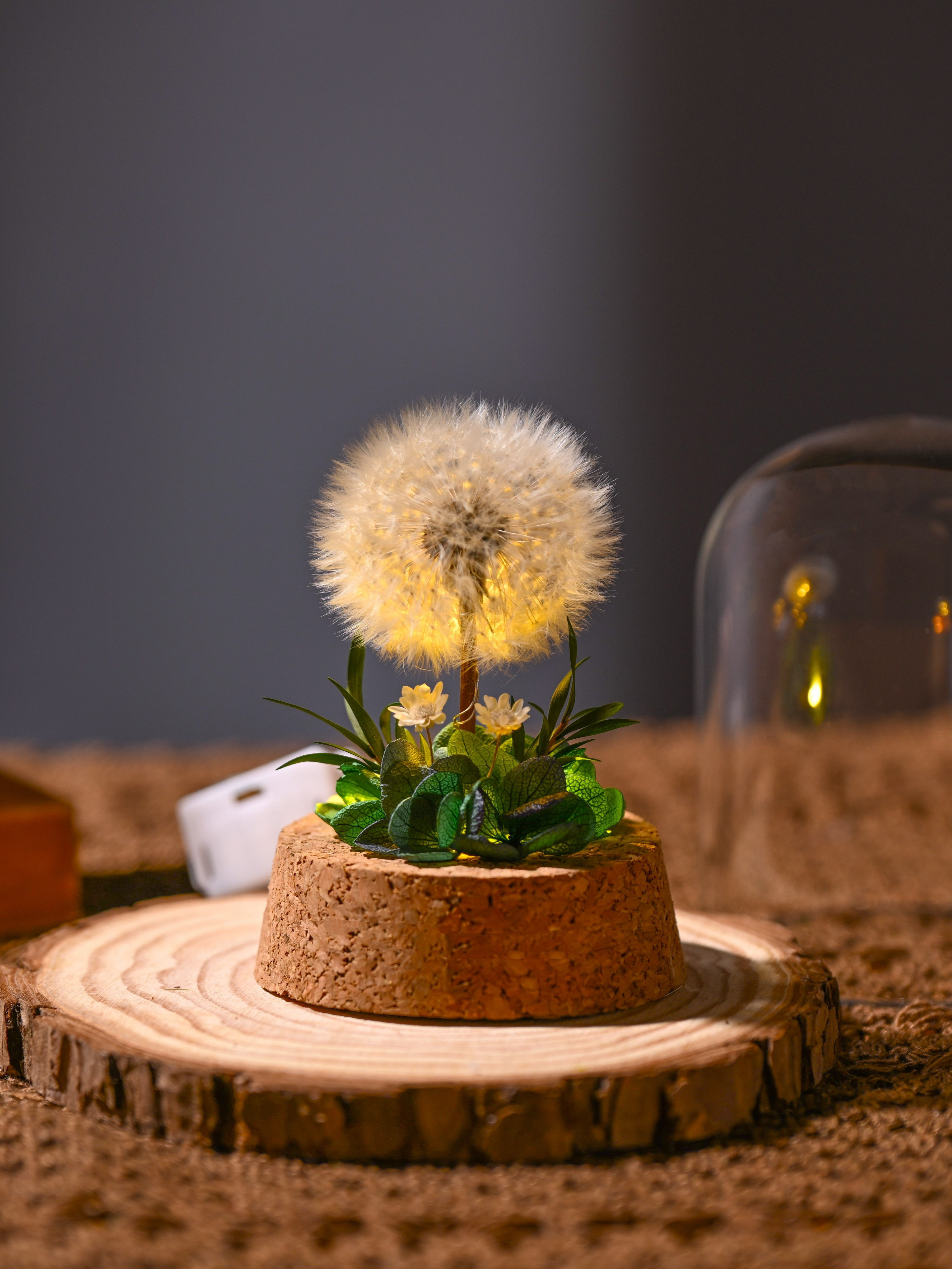 Flower Xu Night Light Dandelion Preserved Flower Bouquet in Glass Dome Birthday Gift