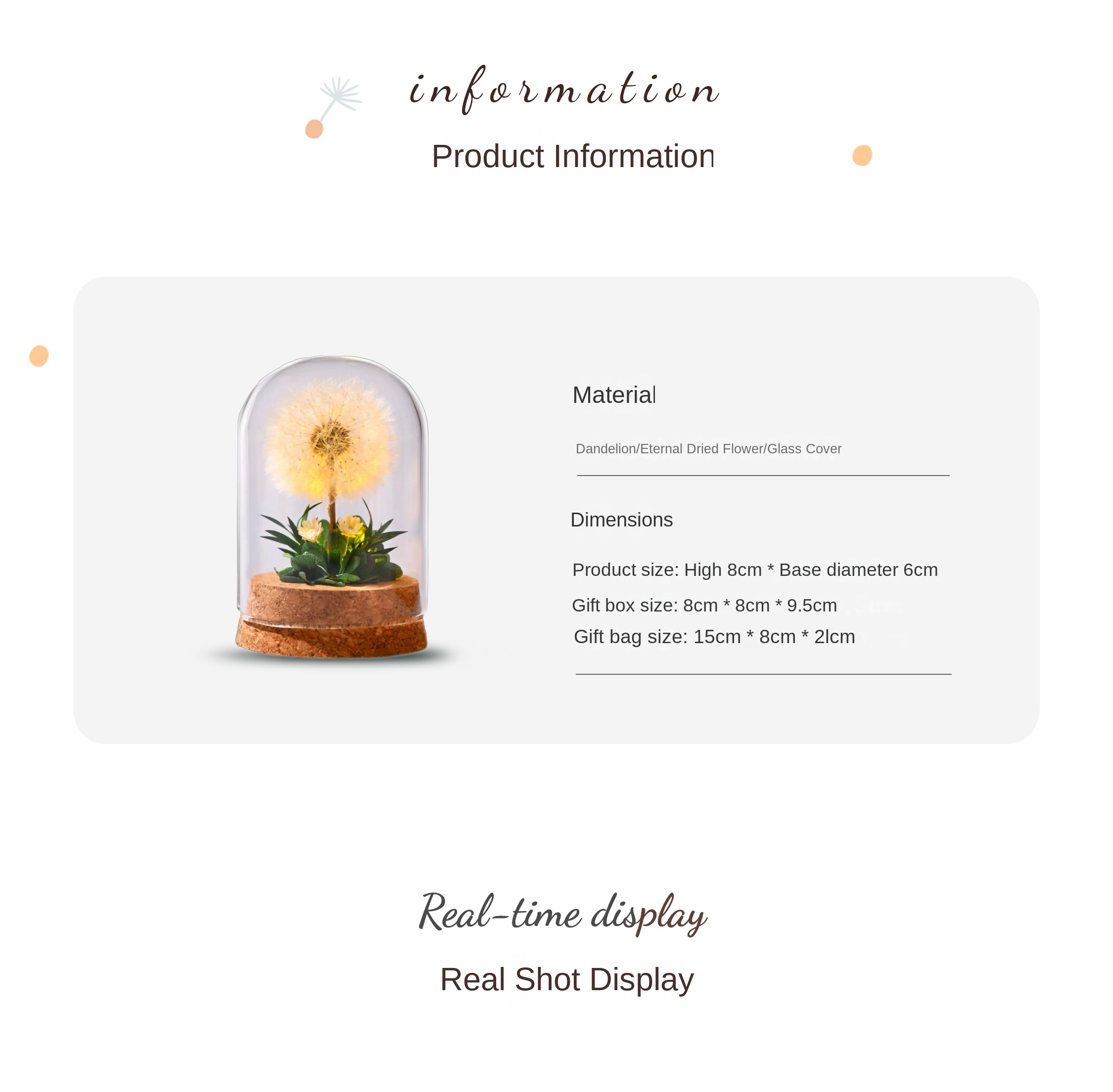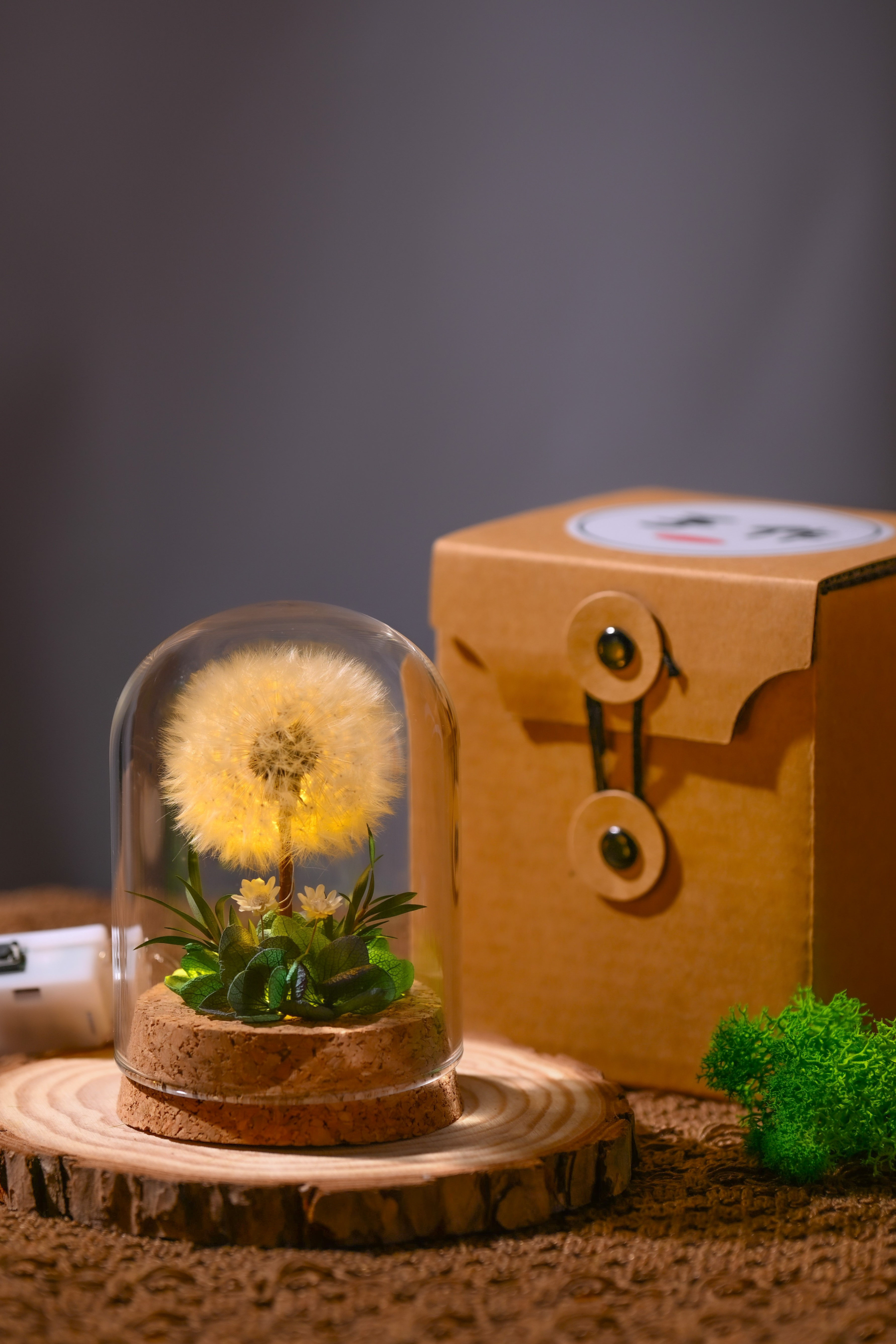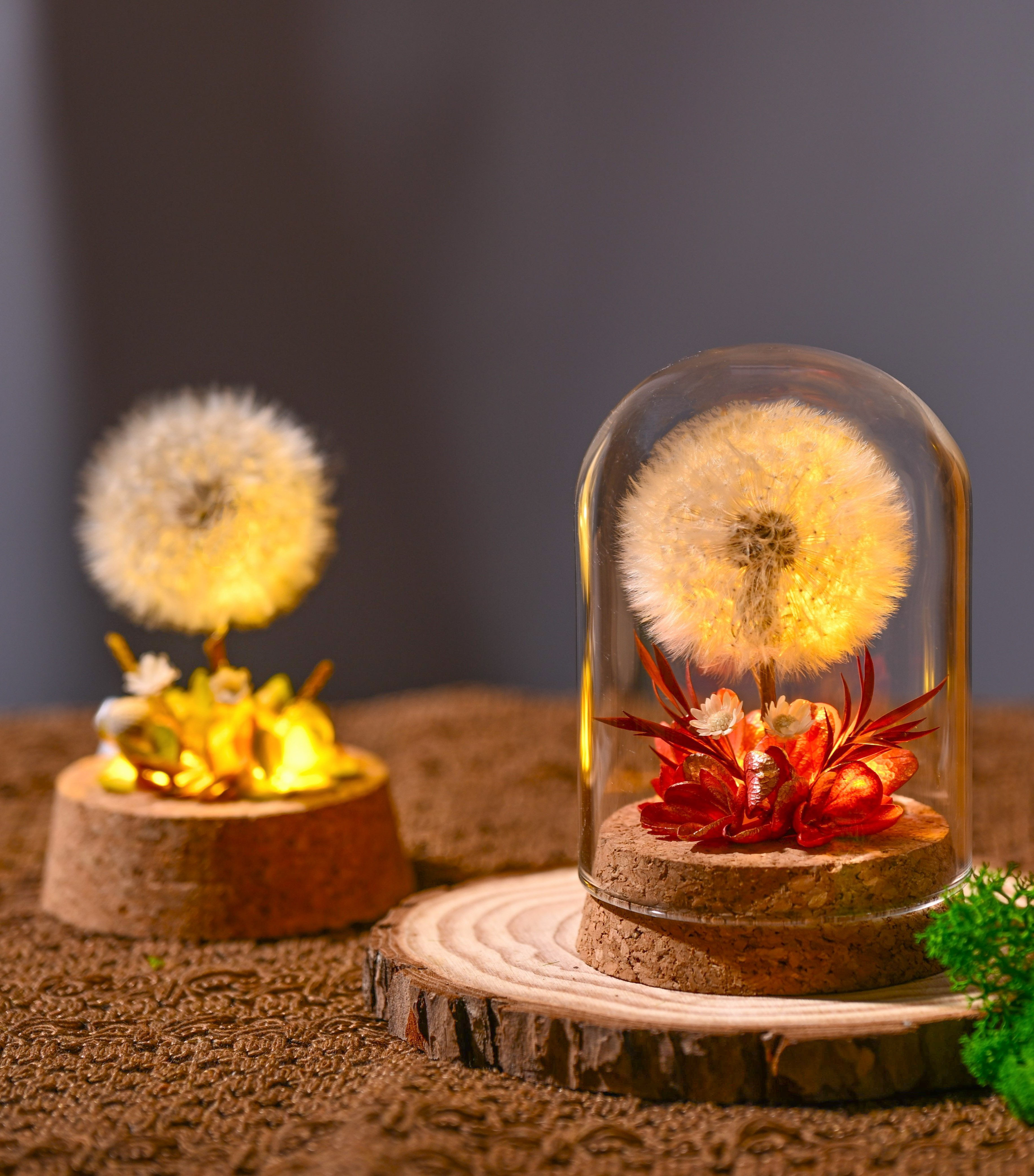 Flower Xu Night Light Dandelion Preserved Flower Bouquet in Glass Dome Birthday Gift